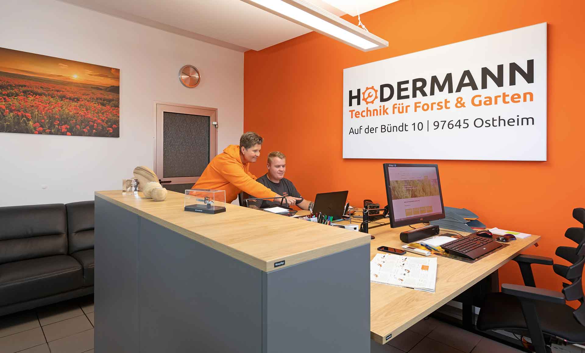Bei uns ist der Kunde noch König, denn das Unternehmen ist ein echter Familienbetrieb, in dem persönliche, kompetente und freundliche Beratung und Service großgeschrieben werden. Neben Firmenchef Thomas Hodermann und seiner Frau Karen, ist schon seit einiger Zeit Sohn Philip als geprüfter Kundenberater und in der Werkstatt tätig. Ergänzt wird das Team von Motorist Maurice Barthelmes.